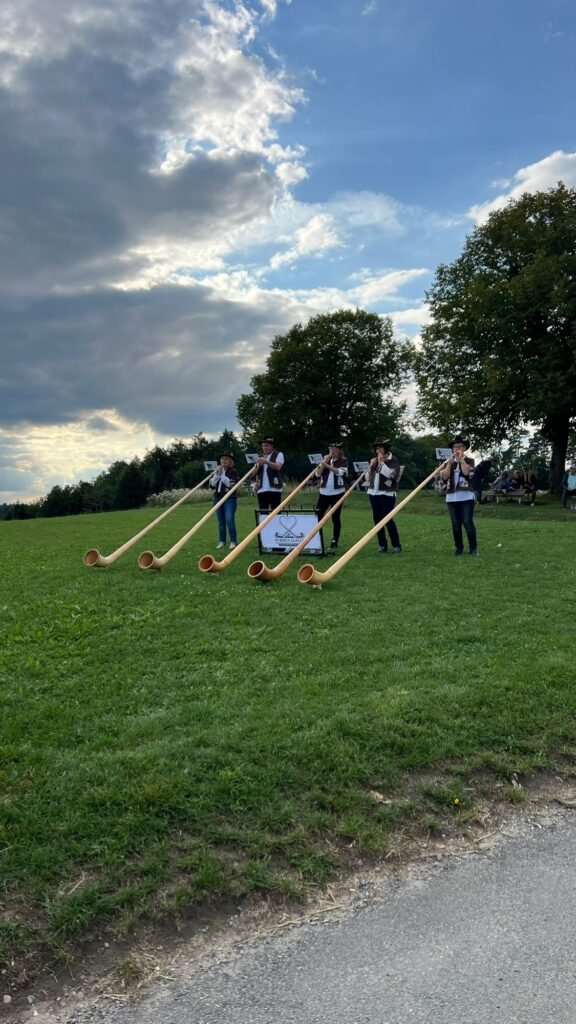 Für beste Stimmung sorgten die Blasmusiker der „One and a half Hour Band“ sowie die „Purren Älpler“, die mit ihrer Musik das Festgelände in eine fröhliche Klangkulisse verwandelten.